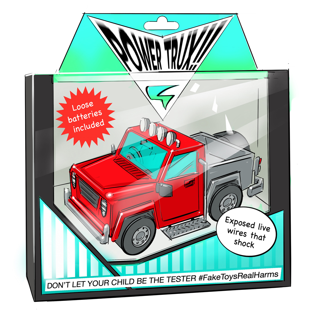 Fake toys (also known as Counterfeit) don’t advertise their “special features”, but if they did, the packaging might look something like this: